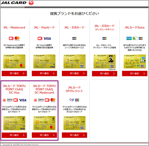JALカードの申し込みページはランクごとにしかカードが表示されていない為わかりにくいですが、一度中に入ってみれば全てのカードを一度に見ることができます。