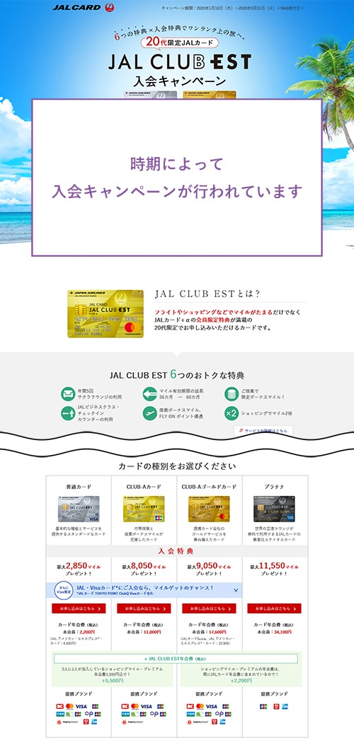 JAL CLUB ESTシリーズ(20代限定)